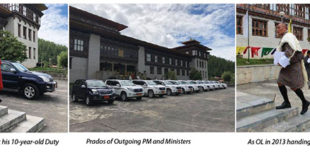 The outgoing Prime Minister Dasho Tshering Tobgay and his 10 ministers today handed back their duty vehicles. Dasho Tshering Tobgay said, “Today I returned the prime minister’s official duty vehicle, the very same vehicle that I returned in 2013. The Toyota Prado served me well for 10 years. But the …