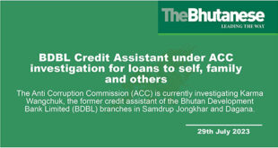 The Anti Corruption Commission (ACC) is currently investigating Karma Wangchuk, the former credit assistant of the Bhutan Development Bank Limited (BDBL) branches in Samdrup Jongkhar and Dagana. Karma Wangchuk began his career as a credit assistant at Samdrupjongkhar on 27 April 2012 and he was later transferred to the Dagana …