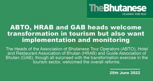 The Heads of the Association of Bhutanese Tour Operators (ABTO), Hotel and Restaurant Association of Bhutan (HRAB) and Guide Association of Bhutan (GAB), though all surprised with the transformation exercise in the tourism sector, welcomed the overall reforms. At the same time, they had suggestions to ensure it is a …