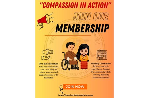 People interested in contributing or joining the initiative can visit https://membership.dpobhutan.org to support the 10,000-member drive for persons with disabilities.