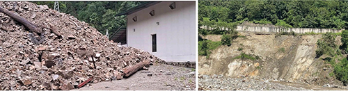 Slide at Suchhu powerhouse (Left) and Slide along the slope of Head Race Tunnel of Dagachhu (Right)